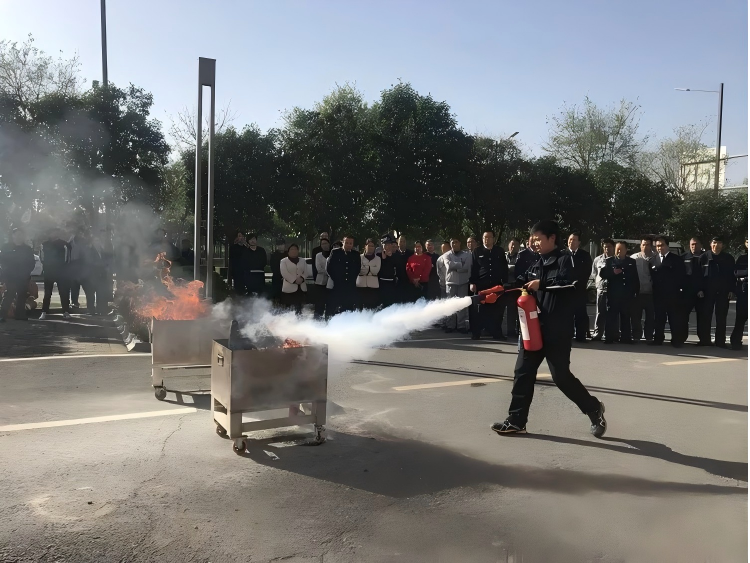 演练开始前,工作人员详细讲解火灾报警流程、灭火器 “提、拔、握、压” 使用方法、疏散逃生技巧,特别针对农业仓储企业员工的特点,强调 “疏散时避免拥挤踩踏、优先保护重要物资台账” 等注意事项。