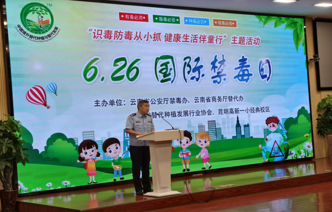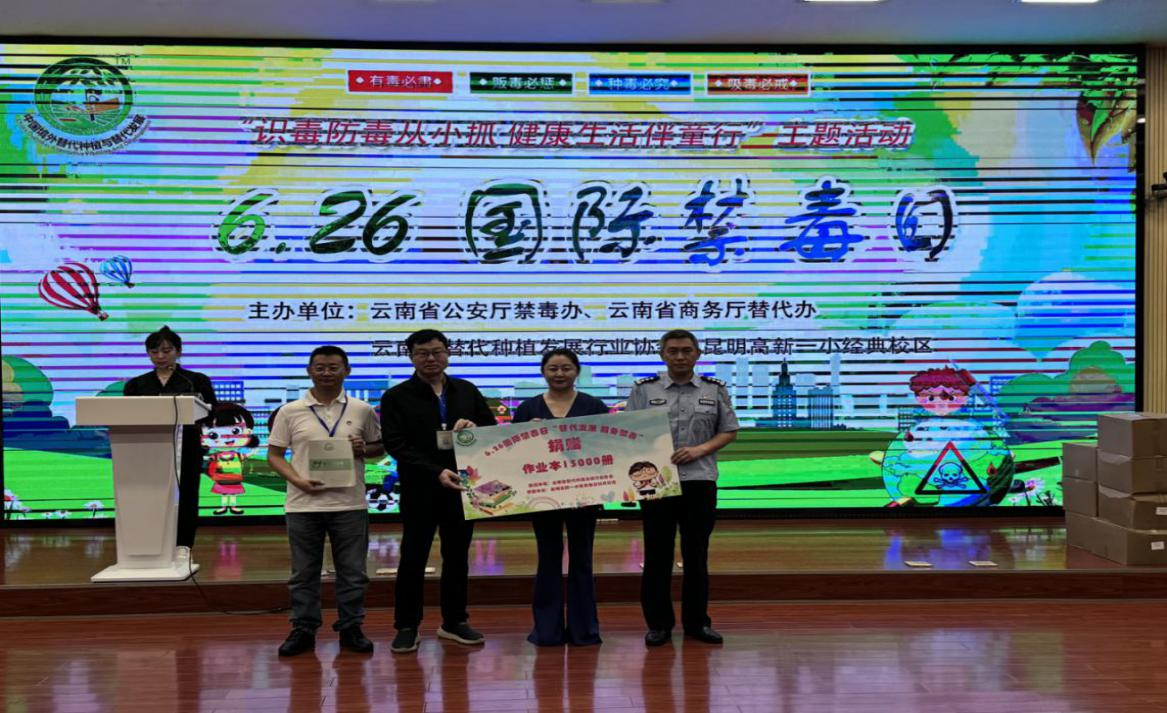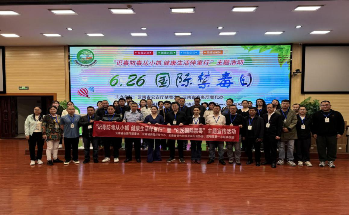 本次活动于2025年6月23日上午在高新一小顺利举行。活动由中共云南省替代种植发展行业协会支部委员会、云南省替代种植发展行业协会秘书处主办,各办事处、老挝代表处及会员企业共同参与。活动以“识毒防毒从小抓,健康生活伴童行”为主题,结合“6.26国际禁毒日”,通过形式多样的宣传教育活动,向师生及社会公众普及禁毒知识,倡导健康生活理念,展示替代种植发展成果。