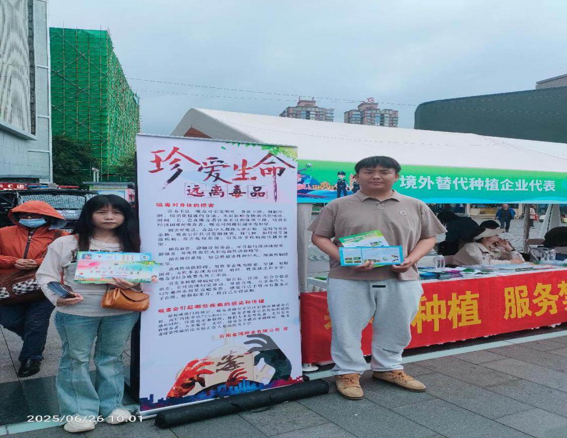 2025年6月26日,我公司积极响应昆明市对外经济技术合作协会号召,参加昆明市2025年“6·26”国际禁毒日主题宣传活动。本次活动通过拓宽宣传渠道、创新宣传形式,营造了良好的社会舆论环境,有力推动了“绿色禁毒”理念的传播,是一项重要实践。